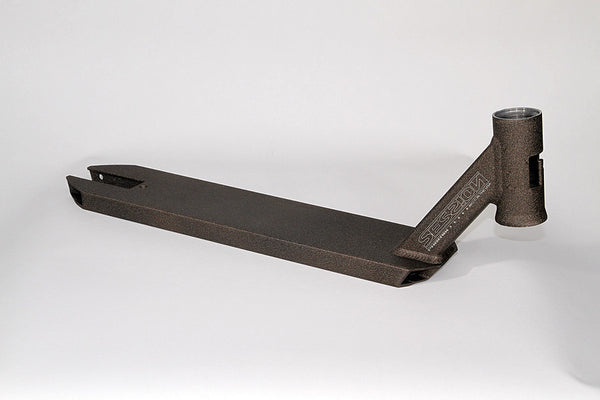 The Phoenix Session deck is Phoenix's newest deck to hit the market. It has been team tested and approved by every member of the Phoenix Pro Scooters team. This is a great deck for anyone that wants to experience an integrated pro scooter deck with tons of strength and durability.