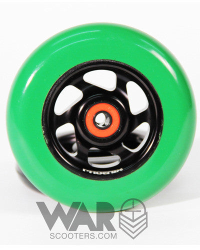 Phoenix pro scooter parts are known for being really heavy duty stuff. You can ride with confidence when you have Phoenix products. The wheels are no different. Phoenix Integra Wheels are top of the line, from the urethane used, to the machining of the cores. They come pre installed with Abec 7 bearings, and once you put them onto your pro scooter, you will feel the speed right away. Great wheels.